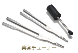 264Hz(主にフェース用)、132Hz(主にボディー用)の2本のチューナーを使い分けて行います。どちらも倍音によって528Hzを生じます。古代ソルフェジオと母音発生の共鳴によるMIチューナーの伝統の元、この美容チューナーは生まれました。美容チューナーによって提案される美容はこれまでの美容とは全く異なる考え方に立つもので、以下の3点の特徴があります。